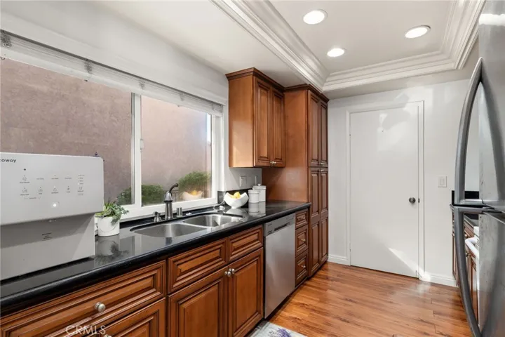 This lovely single level townhouse is a desirable end unit in the sought-after Buena Tierra gated community. Featuring spanish roof tiles, a large open floor plan, vaulted ceilings, laminate flooring, and a spacious primary suite, it is truly move-in ready. The galley kitchen has been recently remodeled with recessed lighting, and the formal dining room easily doubles as a home office. The home has been freshly painted throughout and has dual pane windows. Laundry setup is inside, and the outside offers 2 patios that are perfect for hosting. It has a two car garage and 2 car driveway, and the community offers a community pool, spa, and tons of parking. It’s close to Los Coyotes Country Club and Ralph B. Clark Park and there are multiple hiking trails nearby. The home’s assigned schools include the award winning Sunny Hills High School, Beatty Middle School, and Emery Elementary.