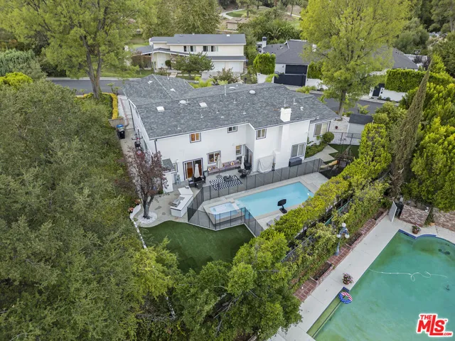 This fully renovated 5-bedroom, 5.5-bath, 3,614-square-foot residence is ideally located on a quiet cul-de-sac near Braemar Country Club in Tarzana. The home offers a bright, open floor plan highlighted by high ceilings, wood flooring, and refined living and dining areas designed for both entertaining and everyday comfort. High-end finishes and quality craftsmanship throughout create a sophisticated yet welcoming environment. The chef’s kitchen features premium stainless steel appliances, custom cabinetry, quartz countertops, and an oversized center island, seamlessly connecting to inviting family spaces anchored by a fireplace. A main-level bedroom with an ensuite bath provides flexible use as a guest suite or home office. Upstairs, the primary suite serves as a private retreat with vaulted ceilings, a walk-in closet, and a spa-inspired bathroom. Additional bedrooms are generously sized and thoughtfully arranged, including two additional secondary bedrooms with its own ensuite bath and one beautifully updated bathroom with dual sinks. A private in-law suite on this level offers added comfort and versatility with its own full bath. Designed for seamless indoor-outdoor living, sliding glass doors open to a serene backyard retreat featuring a resort-style pool and spa, mature landscaping, multiple seating and dining areas, an outdoor BBQ, artificial turf play space, and a swing set. A pool safety fence and storage shed complete the outdoor setting. Offering privacy, elegance, and effortless livability, this exceptional residence presents a rare opportunity to lease a beautifully upgraded home in one of Tarzana’s most desirable neighborhoods.