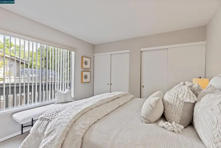 Gleaming hardwood floors, vaulted ceiling and decorator touches enhance this beautiful upper level Mariposa model with a bonus office/den/sunroom. The condo is nicely situated in a natural setting surrounded by greenery. Sunlight fills the living spaces from sunrise to sunset. The kitchen, with newer stainless steel appliances, features a cozy eat-in area. The bedrooms are well-sized with good separation. The laundry room features newer side-by-side, full-size washer and dryer. One covered carport with a large storage room is conveniently located. For future convenience a like-new stair chair is included in sale. This tastefully updated home is move-in ready!