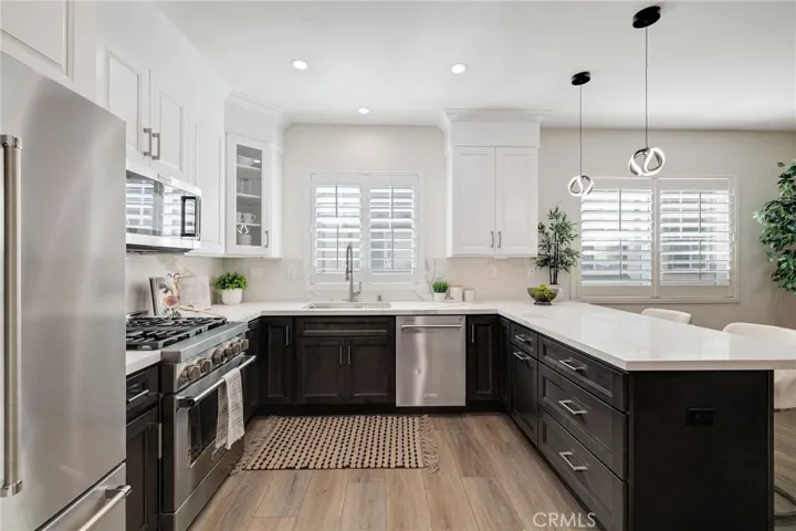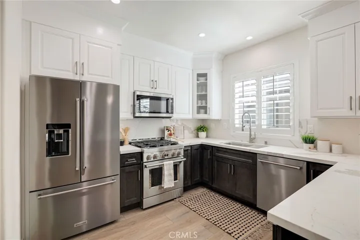 Love at first sight. This stunning, picture-perfect 4 bedrooms, 3.5 bath townhome is nestled in the gated community of Stonehaven. This exceptional home with high ceilings and lots of natural light is exquisitely designed and meticulously remodeled with modern upgrades and charm. The front door greets you to a formal entry and welcomes you to the main floor featuring the living room, a formal dining area, a breathtaking kitchen with breakfast bar, a culinary delight, designed with style and functionality, stainless steel appliances including a Kitchen-Aid commercial style range, microwave hood combo, French door refrigerator with filtered water system and a pantry. A guest bathroom completes this floor. Stairs lead you to the upper level boasting a spacious primary suite with walk-in-closet and a gorgeously designed bathroom with double sink vanity, separate shower and a soaking tub. Two well-appointed additional bedrooms that share a full bathroom with tub and shower complete this level. On the lower level, you will find a conveniently located fourth bedroom and a bathroom with shower, ideal as a private office or guest room. A large two car attached garage with direct access, laundry hookups, Shelves and Lift Master WI-FI garage door opener completes this level. Other outstanding features include gorgeous SPC flooring on first, second, third levels and stairs, Newer PEX repiping, additional insulation, central heating and air conditioning, recessed lighting, eight upgraded Simonton windows, shutters, a very cozy patio, and ample storage and cabinets.This is a home to create memories for many years to come. Destined to win your heart.