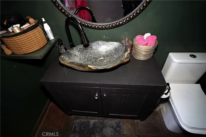 One of the upstairs bathrooms is an en-suite, located inside the primary bedroom and features a spa-inspired design with a pebble-stone walk-in shower, glass enclosure, and natural stone flooring. The second upstairs bathroom offers a clean, modern aesthetic with a full tub/shower combination accented by large-format marble-style tile and coordinating flooring facing the 2nd bedroom.