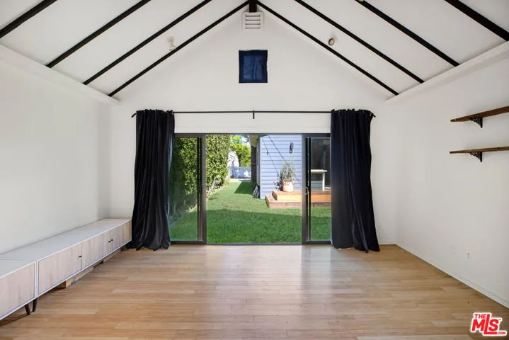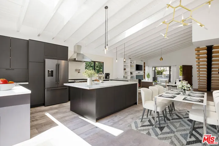 Beautiful reimagined modern craftsman located on a gorgeous sought after street. Dramatic architectural staircase and high ceilings welcome you to the home. Open floorplan, fireplace, stunning cooks kitchen w/high end appliances. The Great room opens and flows into the back yard. The garage was converted to a guest house with a kitchen and bath adding an extra 400 sqft to the overall footprint of the house. The downstairs has a master suite with French doors that open to the dipping pool and lush back yard. There are two additional bedrooms and a bath downstairs. Upstairs there is a second master suite with a balcony that overlooks the yard. Gorgeous bathrooms throughout. Beautiful trees and mature landscaping. Easy access to all that West Hollywood has to offer.