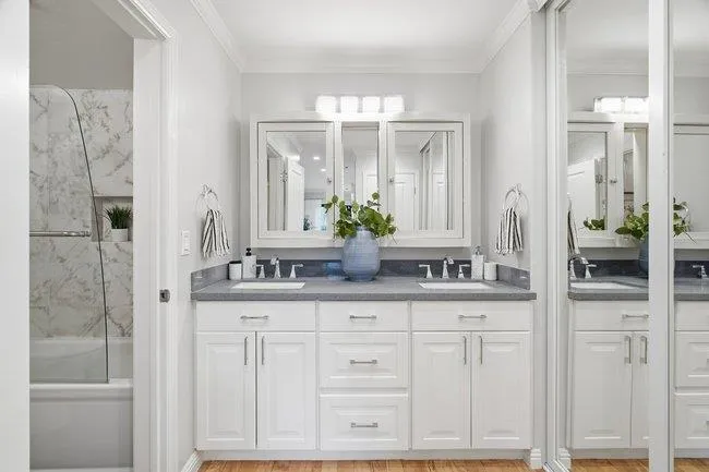 Outstanding location 2 blocks from California Ave for shopping, dining, farmers’ market; Caltrain, Stanford Marguerite shuttle stop, Peers Park, Stanford Univ and Palo Alto High. One of very few units in the secured complex with updated mini-split HVAC units for both heating & cooling (A/C). Fully remodeled, this condo features 2 primary suites (2 beds & 2 remodeled en-suite baths), offering flexible floorplan for guests, roommates, multiple tenants. Formal foyer, large living room with fireplace, spacious formal dining area. Refinished hardwood floors, crown moldings, recessed lights throughout. Remodeled kitchen with refinished cabinets, new fixtures, stainless steel appliances including brand new stove. Wide sliding glass doors from the main living areas open to large outdoor room with parquet wood decking and screened windows with garden views and the grand primary suite has private patio. Inside laundry with Bosch washer & dryer. Huge storage closet by the front door in the hallway. Gated parking: one assigned space + plentiful guest/open parking; street parking permits available for purchase from the city of Palo Alto. HOA fee includes water, garbage, earthquake insurance; pool/spa, lounge. Top Palo Alto schools: Escondido Elementary; Greene Middle; Palo Alto High.
