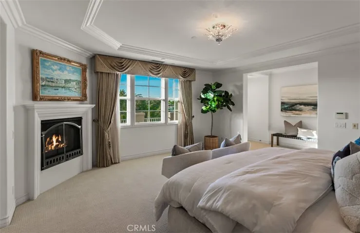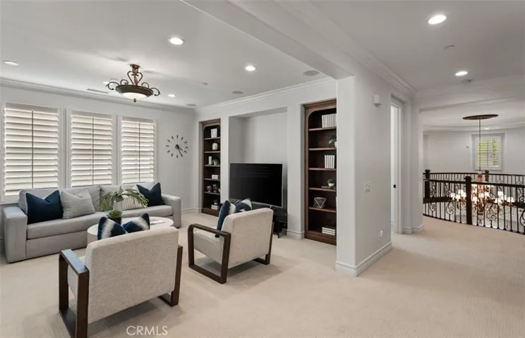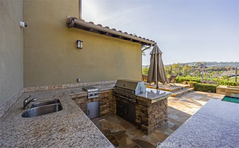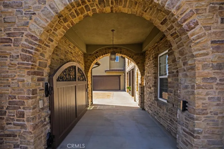 Tucked behind the gates of Rancho Madrina on an expansive 12,556-square-foot premium lot, this William Lyon estate feels like the crown jewel of the community—private, commanding, and rich with sweeping views across Marbella Country Club, the historic Mission, and the rolling hills. A dramatic grand entry with soaring ceilings, striking designer lighting, and dual custom staircases sets the tone for the refined interiors ahead. Marble floors grace the main level, complemented by crown moulding, recessed lighting, and a sense of timeless elegance throughout. The floor plan is both gracious and highly functional, offering six bedrooms and five-and-a-half baths, including a main-level en-suite ideal for guests and a separate office or sixth bedroom that adapts effortlessly to today’s lifestyle. Formal living and dining spaces flow seamlessly into the great room, creating a natural rhythm for everyday living and elevated entertaining alike. At the heart of the home, the chef’s kitchen is finished with granite countertops, a full travertine backsplash, custom cabinetry, and an impressive suite of Wolf appliances, including a Sub-Zero double refrigerator, dual dishwashers, a butler’s pantry, and a wine and beverage refrigerator—designed for both intimate dinners and large-scale gatherings. Upstairs, the primary suite is a true retreat, complete with a private balcony and a spa-inspired bath featuring dual vanities, two separate water closets, a walk-through dual-head shower, and a soaking tub. The custom walk-in closet is thoughtfully finished with California Closets organization. A generous bonus or media room and an oversized laundry room complete the upper level. Throughout the home, custom built-ins, solid silk window treatments, and plantation shutters add polish and warmth, while recent upgrades including fresh paint and new carpet make the home completely move-in ready. Additional highlights include surround sound, three fireplaces, and epoxy-finished flooring in both the three-car tandem and separate garage. Outdoors, the backyard unfolds as a private resort. A custom pool and spa with stone accents and water features anchor the space, surrounded by mature citrus and pomegranate trees, multiple fountains, and expansive patios and balconies designed to capture the views. A built-in BBQ island with sink, beverage refrigerator, and fire pit completes the setting. Homes of this caliber, on lots like this, rarely come available. This is a special opportunity.