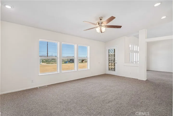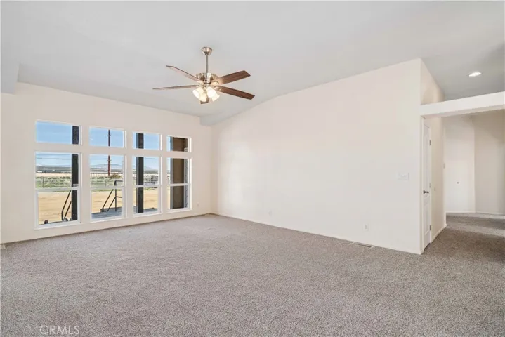 Recent updates include fresh interior paint, brand-new carpet, and a newer roof, creating a truly move-in-ready opportunity. Abundant natural light fills the home, highlighting the vaulted ceilings in the formal living room, the open formal dining room, and the expansive family room that flows seamlessly into the kitchen. The large, inviting kitchen features granite countertops, stainless steel appliances, a center island with breakfast bar, and generous counter and cabinet space—ideal for both everyday living and entertaining.