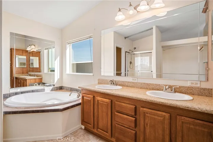 The primary suite serves as a private retreat, offering a sitting area or office space and an en-suite bathroom with dual sinks, an oversized step-in shower, and a separate soaking tub. Additional bedrooms are well-sized and versatile, perfect for family, guests, or work-from-home needs.