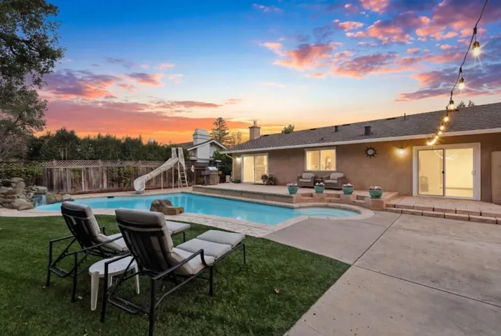 Discover this exceptional Saratoga home offering 6 bedrooms and 4 bathrooms, with a rare blend of refined elegance, and resort style living in one of Saratoga’s most sought after neighborhoods. The home immediately impresses with a spacious and smart floor plan designed for elevated living and spectacular entertaining. The chefs kitchen is the heart of the home, featuring superior appliances and generous space for gathering and hosting memorable occasions. A dedicated media room exudes a versatile space for immersive sporting events, streaming parties, Peloton workouts, or relaxed evenings at home. The primary suite is a luxurious retreat, with a spa design that delivers tranquility, and a sense of escape at the end of the day. The guest bedrooms offer flexibility for family living, hosting friends and work from home options. An abundant backyard is a private resort, featuring an in ground pool and hot tub, custom decking, a bocce ball court, fire pit & a curated herb garden. Mature landscaping surrounds the property, creating a peaceful, private setting ideal for seamless indoor outdoor living. Ideally situated near top rated schools, fine dining, boutique shopping, and all that Saratoga has to offer, this remarkable home delivers an exceptional lifestyle in a premier location.
