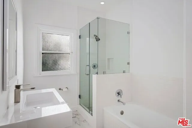 Recently and beautifully renovated upper unit in West Hollywood’s trendy Fairfax district. Between Melrose and Beverly, this coveted location has everything you could want! Fall in love with the home’s open and spacious floor plan accented by large windows welcoming floods of natural light and sleek wood floors. Relish your favorite meals in the gourmet kitchen with stainless-steel appliances, gorgeous white cabinetry, center island, quartz counters, and more. Additional features include well-appointed bedrooms with built-ins, sophisticated bathrooms, in-unit washer and dryer, private back entrance, and one car garage space. Move in today and live less than a block from Jon & Vinny’s, local shops, bars, and more.