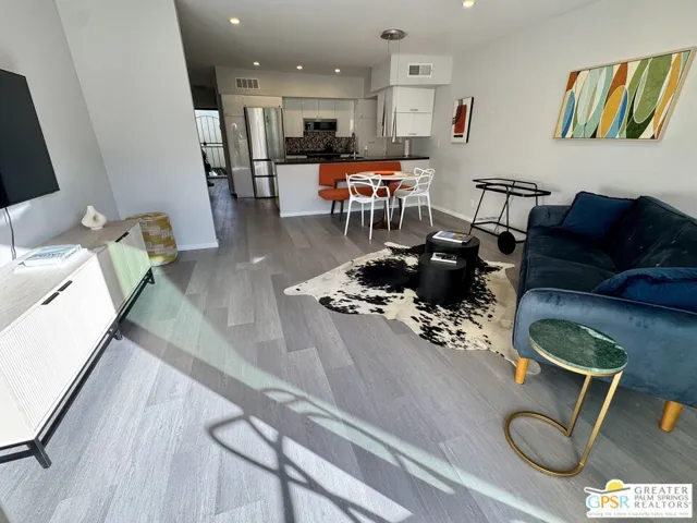 Turn-Key, Fully Furnished One-Bedroom Condo in Prime South Palm Springs. Welcome to Smoke Tree Racquet Club an iconic mid-century community designed by renowned architect Hugh Kaptur, perfectly situated in the heart of highly sought-after South Palm Springs. This completely renovated, west-facing upstairs one-bedroom, one-bath condo is turn-key and fully furnished right down to the linens making it ideal for a full-time residence, weekend escape, or investment opportunity. Step into a bright, open-concept living space featuring fresh finishes, stylish decor, new flooring, an upgraded kitchen with modern appliances, and a beautifully updated bathroom. The spacious bedroom offers generous closet space, and the private balcony captures stunning west-facing mountain views and spectacular sunsets. Enjoy resort-style living with a completely refreshed community pool, spa, tennis and pickleball courts, and lush, manicured grounds. Just steps away, walk to the popular Smoke Tree Plaza for shopping, restaurants, and everyday conveniences no need for a car. Move right in and start enjoying the Palm Springs lifestyle with ease and style this is mid-century living at its best. Don t miss out this is a rare turn-key offering in one of Palm Springs most desirable communities.