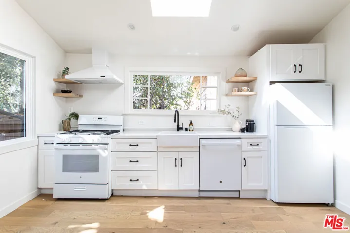 Tucked away in Highland Park, this inviting 1-bedroom 1-bath Bungalow is newly renovated and ready to call home. A lovingly restored interior features vaulted ceilings, skylights, shaker style cabinets, natural white oak hardwood, all new appliances, washer & dryer and quartz countertops. A vast amount of natural light pours into this open floor plan creating a warm and relaxing environment. Meticulously restored with all the modern amenities while still incorporating vintage characteristics such as original exposed ceiling beam in the living room. Additionally, a newly installed mini-split HVAC system supplies heat and AC throughout the unit which creates the perfect temperature year-round. Situated in a quiet neighborhood, this unit will leave you undisturbed. Enjoy a glass of wine or enjoy the sunset while relaxing in your private yard. When you’re ready to venture out, you’re just minutes away from Highland Park hotspots along Figueroa Blvd or a short drive to either DTLA or Pasadena. 1 off-street parking space (with outlet for electric vehicle charging) is available for an additional fee.