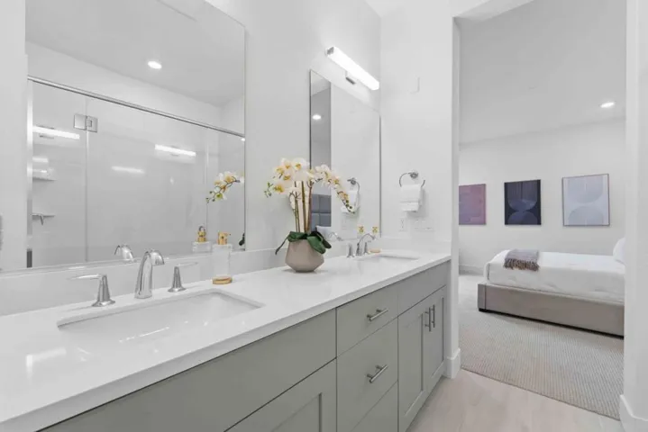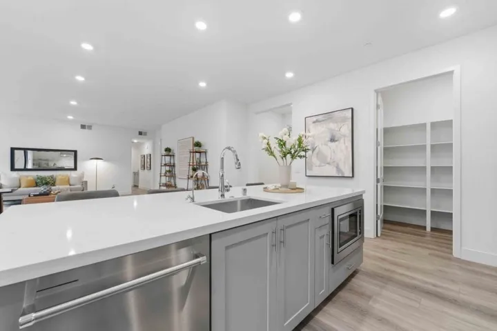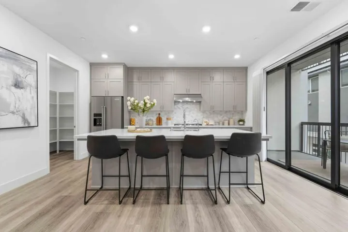Welcome to this modern, luxury 2-year-new condo in Fremont’s desirable Metro West community. This spacious 1,866 sq ft home offers 3 bedrooms and 2 bathrooms with a bright open-concept layout. The gourmet kitchen features a gas cooktop, quartz countertops, large center island with breakfast bar & sink, plenty of cabinets, KitchenAid appliances, walk-in pantry, and water purifier. The covered balcony connects seamlessly to the kitchen and living area perfect for relaxing or entertaining. Custom luxury window shades and curtains throughout. The expansive primary suite includes dual walk-in closets and bathroom with double sinks and deluxe shower with seat. Two additional bedrooms and a full bath are conveniently located in the hall. Enjoy central heating and A/C, an indoor laundry room with washer & dryer, and a detached tandem 2-car garage with EV-ready outlet. Community amenities include a rooftop deck with BBQ, fire pit, and seating area, plus a clubhouse, fitness room, shared office, entertainment kitchen, dog wash station, and playground. Ideally located within walking distance to BART, top-rated Lila Bringhurst Elementary school, community parks, and Tesla Factory, with easy access to Hwy 680/880. Move-in ready gem is designed for modern lifestyles and unbeatable convenience!