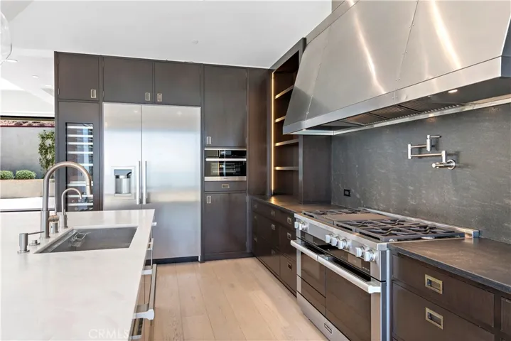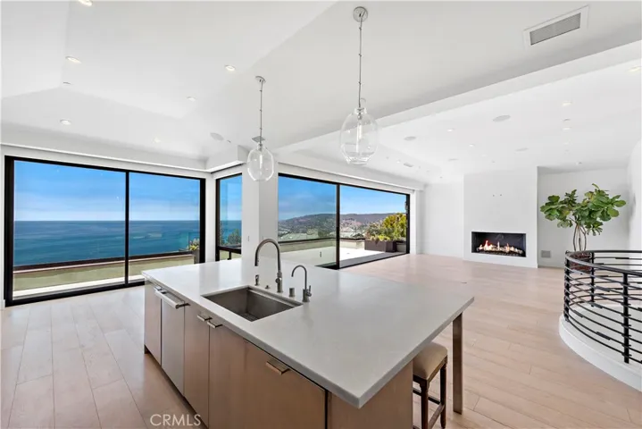 Enjoy outstanding ocean and coastline views from this incredible custom view home. Built in 2020 this impressive soft-contemporary residence features a living room and formal dining room both with a fireplace, four ensuite bedrooms and 5.5 baths. Open to living areas, the custom designer kitchen has black granite and white marble countertops, Meile and Thermador appliances, and a spacious island with seating. Pocket slide-away glass doors open to view terraces and balconies which bring living areas outdoors. High ceilings, French oak plank flooring, white walls, and high-end stone, wood, and tile finishes enrich the interior. All levels are served by an elevator and a spiral staircase that is illuminated by a circular skylight. Woods Cove is just down the hill, and 5-star resorts, golf, shopping and restaurants, and excellent schools are mere minutes from home.