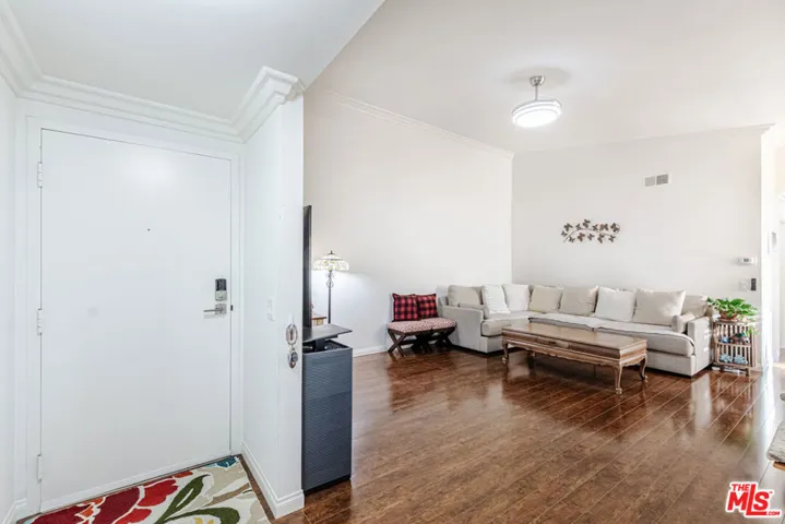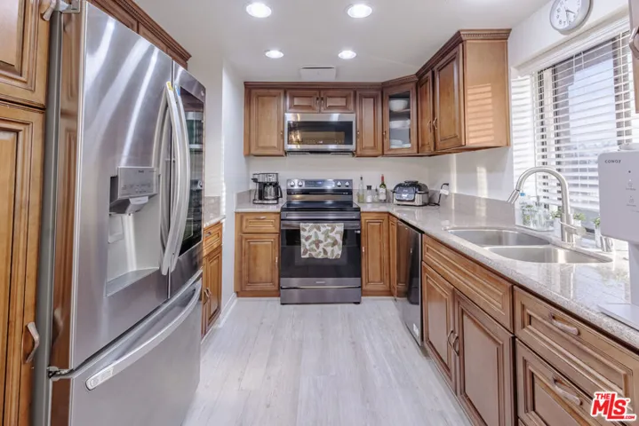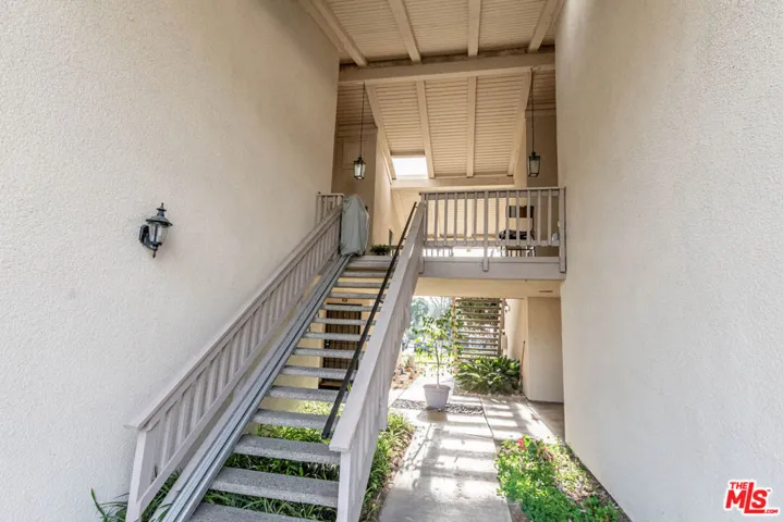 A beautifully remodeled condo in La Mirada Landmark 55+ Community. The entire unit (kitchen, bathrooms, windows/shutters, flooring, paint, etc.) has been recently renovated and impeccably maintained. Top floor unit with only one shared wall. The large balcony has been enclosed to create an extension of the living room, providing versatile extra living space. A ton of warm, national light comes in as the unit faces south. Other features include all new appliances (dishwasher, microwave, stove, washer & dryer), a soaring vaulted ceiling in the living room, skylights in both bathrooms, nicely tucked away stackable in-unit laundry closet. Detached one car garage is in close proximity. Ideally located in the complex, the unit is away from the main road while being a nice stroll away from the club house. HOA covers water and trash. Landmark is a 24/7 guard-gated community offering a serene and tranquil environment in its lush, landscaped grounds with tree-lined walkways. Landmark is also a vibrant community where residents enjoy exclusive access to many amenities and activities including a clubhouse, library, swimming pool/spa, tennis courts, pickleball courts, fitness center, putting green, ample monthly social events. The complex is conveniently located adjacent to La Mirada Golf Course and La Mirada Community Regional Park. Major shopping, dining and medical facilities are also within minutes’ driving. This has got to be one of the best offerings currently in Landmark. Do not miss this opportunity!