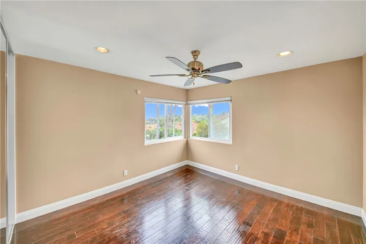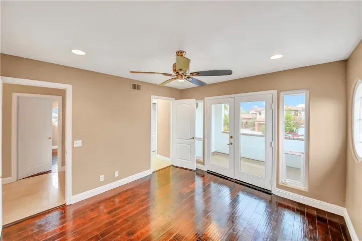 Upstairs, three additional bedrooms include one with an en-suite bath and two connected by a Jack-and-Jill bathroom, all enhanced by rich hardwood flooring.