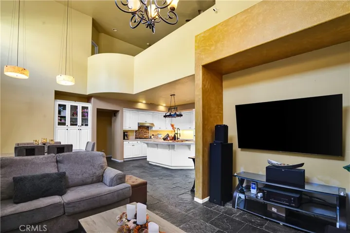 The open layout features soaring ceilings and seamless flow between the kitchen, family room, living room, and dining areas—ideal for both everyday living and entertaining. The chef’s kitchen is complete with a large center island, ample cabinetry, and abundant workspace.