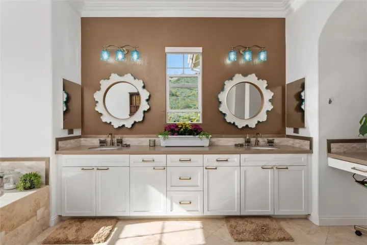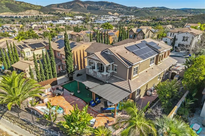 BEAUTY & VALUE in prestigious gated La Costa Ridge! Tucked at the end of a quiet cul-de-sac, this distinctive designer residence blends an inspired aesthetic “Out West meets iconic California surf culture” with elevated craftsmanship and relaxed Southern California luxury. Offering 4 bedrooms, 3 baths, approx. 4,053 sq ft, this expansive home is set on a 10,000+ sq ft lot with a private hillside backdrop delivering exceptional privacy with no neighbors behind. A secure courtyard entry welcomes you into rich wood floors, timeless millwork, and a bright open-concept floor plan ideal for effortless entertaining and refined everyday living. The home’s formal living and dining spaces create an elegant setting for gatherings, while the fireside family room offers comfortable connection. At the heart of the home is the remodeled gourmet kitchen, showcasing premium stainless appliances, statement countertops, designer backsplash, oversized center island with seating, wine center, breakfast nook, and a beautifully finished walk-in pantry designed for hosting and elevated daily life. A downstairs bedroom and full bath provide flexibility for guests, office, or multi-generational living. Upstairs, a spacious loft offers the perfect media lounge, library, or work-from-home space. The primary suite is a private retreat featuring expansive closet space and a spa-inspired bath with luxury appointments including a top-of-the-line Toto Neorest toilet, automated window shade over the tub, and Toto washlets in remaining baths. Notable upgrades include smart home features, solar panels, whole house fan, security system, tankless water heater, auto sprinklers, EV hook-up outlet in the garage, and the premium Waterboy whole house water filtration and conditioning system. Step outside to a truly private backyard sanctuary, an entertainer’s dream with covered patio dining, outdoor fireplace, elegant fountain, built-in BBQ station with sink and refrigerator, manicured landscaping, fruit trees, and a putting green. Residents enjoy a well-kept community with scenic walking trails plus proximity to top-rated schools, restaurants, shopping, and world-class golf. Enjoy an ideal coastal lifestyle close to North County’s classic beach towns and premier beaches, while also positioned for business access between San Diego and Orange County. Commuters will appreciate access to Palomar Airport and nearby connectivity to the 5 Freeway, 15, and 78.