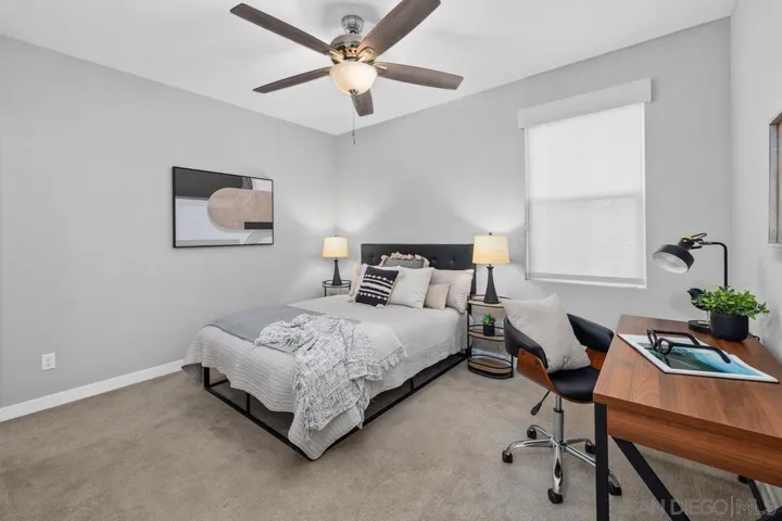 NEW PRICE! Premier location! Welcome to this rare 2-STORY residence offering a FULL BED AND BATH ON ENTRY level, in-unit laundry, and an attached two-car garage with EXTRA built-in storage. Featuring one of the LARGEST YARDS in the entire community, one of only two this size (~450 sf, nearly twice the size of other yards), this home enjoys exceptional privacy with no rear neighbors and a peaceful front-facing balcony view. Inside, the home is beautifully upgraded with a stunning kitchen featuring quartz countertops, stainless steel appliances, custom designer lighting, window shades, and upgraded bathrooms throughout. Upstairs are two ensuite bedrooms, including a spacious primary suite with a walk-in closet. Promontory residents enjoy resort-style amenities including pools and spas, a lap pool, private cabanas, fire pits, BBQ and picnic areas, dog park, clubhouse, gym, game rooms, and lushly landscaped common areas, all just steps from Civita’s shops, restaurants, and trails. A rare opportunity to own a low-maintenance home with an exceptional outdoor space in one of San Diego’s premier master-planned communities.