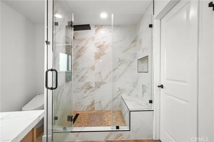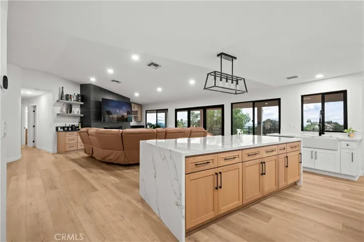 Spanning 2,603 sq. ft., the home features an open-concept layout designed for both comfort and multi-generational flexibility. The double-door entry leads into a light-filled interior with high ceilings and a cozy fireplace. With five generous bedrooms, including two master suites, there is ample room for a large family, a home office, or guest accommodations. Skylights and large windows throughout frame breathtaking panoramic views of the city lights and surrounding mountains.