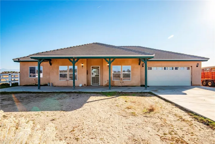 Your search for a functional ranch in the desirable Antelope Acres West Lancaster area with extensive livestock/horse facilities is over. You have found it! Welcome to your own private ranch oasis with a lovely single-story home on 2.5 acres of flat useable land, fully fenced, featuring an easy 10-horse capacity comfortably! The home is a wonderful single-story, 4&2, plus the garage has been converted into an additional living space with ceiling fan, and private entrance door (seller will leave panels for buyer for easy conversion back to garage, if desired). As you approach the covered entry to the home, you will notice a large formal dining room on your right, bedroom or office to the left, plus a huge living room with beautiful French doors leading to your private back yard, and lovely green sodded area. The kitchen has tile countertops, ample cabinets, and opens to the living room and additional dining area. The home features Mahogany doors throughout, plus Knotty Elder cabinetry. The master has a large ensuite with soaking tub, separate shower, dual-sink vanity, and a walk-in closet. There is a large separate laundry room, and all appliances are included with the home. The ranch facilities are extensive (rare for the area) including a 30’x 90’ six-stall barn with turnouts (with electricity), additional 2-stall shelters, pig pen, goat pen, plus a football field size arena (280’ x 160’) which includes chute & boxes, an additional shelter, plus a 15-foot alleyway. In your backyard you have another large fenced turn-out area for horses or livestock, plus a huge open yard for your favorite toys such as RV parking & off-road vehicles. Automatic sensor lights are included in the exterior of the home, plus a solar-powered light on the main gate. The sellers are generously leaving a tractor, C-Train/tack room (with paid solar), plus extra panels for the new owner. The home also features full fencing around property, and concrete tile roof. Water is provided by the local Lands Project Mutual Water utility company, and there is a local town center minutes away which includes restaurants, feed/hardware store, country market with gas station & food counter, plus your own local fire station and community center. Just ½ hour drive to Lancaster or Palmdale, it doesn’t get much better than this! The sellers are the original owners/builders, and this property reflects pride of ownership! Come and check out this amazing all-inclusive ranch property today!