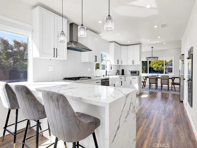 Beatifully remodled home located in one of the most desirable parts of North Hollywood. Step inside this warm and inviting open floor plan with modern flooring, recessed lighting, dual pane windows and a cozy fireplace. Kitchen features newly upgraded cabinets with quartz counter top and stainless steel appliances all opening to the nicely sized dining area. This home also features freshly remodled bathrooms with tiled flooring and walls, quartz counter tops, and frameless sliding glass doors. Backyard features a nicely sized deck area, beautiful built in bbq area with bar seating, modern firepit and plenty of seating for hosting and entertaining. This is the front main home which is completelhy seperated from the back home with 6ft white privacy fence.