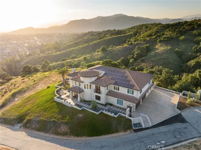 Nestled in the exclusive, gated community of Saddleback Crest Estates, this 2019 custom-built estate offers the ultimate in privacy, luxury, and breathtaking views. Perched high on a hillside, the home boasts panoramic vistas of downtown Los Angeles, the San Gabriel Valley, and the surrounding mountains. As you step through the double door entry, you’re welcomed into a grand formal entry and living room featuring soaring 2-story ceilings, a beautiful fireplace, a dramatic spiral iron staircase, and incredible views. The family/great room is designed for seamless indoor-outdoor living, w/37’ retractable glass doors framing the spectacular city lights & pool views. A cozy gas fireplace, glass-enclosed courtyard w/a soothing fountain, and a spacious seating area create an atmosphere of relaxation and sophistication. The chef-inspired kitchen is a dream, w/a large center island, stained cabinetry, quartzite counters, Wolf stainless appliances, built-in refrigerator, coffee bar, and custom walk-in pantry. The dining area is perfect for evening meals, w/custom built-in China cabinetry. Work from home in style in the private office, featuring built-in shelves and cabinetry. A spacious guest suite w/an en-suite bathroom and direct access to the pool area is also on the main level, along w/a powder room. Upstairs, the luxurious primary suite is a serene retreat w/an open beam ceiling, a private balcony w/breathtaking views, and a cozy fireplace. His & hers walk-in closets, a refreshment area w/Sub-Zero refrigerator, and lighting. The spa-like primary bath offers two separate vanities, an oversized soaking tub, and a walk-in shower w/multiple shower heads. A children’s family room w/built-in desks provides the perfect space for play and study. The upper floor also features two additional bedroom suites, a fifth bedroom ideal for a gym, an extra powder room, and a dedicated laundry room. Step outside to your own private oasis, where the infinity-edge pool and oversized spa w/swim-up counter and Baja shelf are designed for relaxation and entertainment. The covered patio features a beverage counter w/refrigerator & ice maker, while the California room w/electronic shades offers a perfect spot for lazy afternoons. A fire pit & stunning fountain complete the outdoor space, while a cabana w/built-in BBQ, sink, warming drawer, and refrigerator provides the ultimate in outdoor dining and entertaining. The home also includes a 4-car attached garage and spacious driveway.