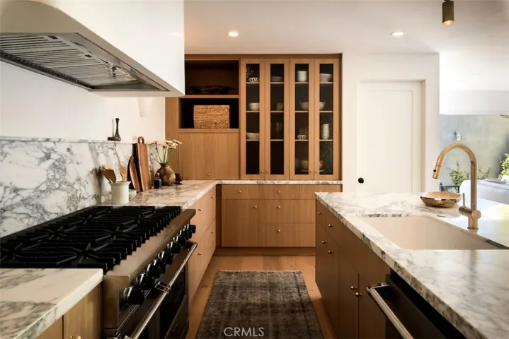 Designed for the quintessential seamless indoor-outdoor flow, the living room features expansive bi-fold doors that open to a private, landscaped backyard complete with a built-in firepit for year-round entertaining. The detached two-car garage is fully finished, providing an incredible flex space for a high-end home gym, second office, or creative studio. From the bespoke millwork to the refined lighting, every detail has been curated for those who value quality, craftsmanship, and a premier Westside location. This is a rare opportunity to be the first to reside in a designer-level sanctuary in the heart of Venice.