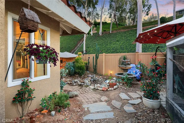 This serene end-unit, designed like a PUD, is nestled against a tranquil hillside and features a rare wrap-around backyard with a large, spacious entertainment area, offering endless opportunities to host lively gatherings, create a thriving garden, or simply unwind in nature after a long day. The covered patio provides a zen-like atmosphere, making morning coffee or al fresco dining feel like a café experience at home.