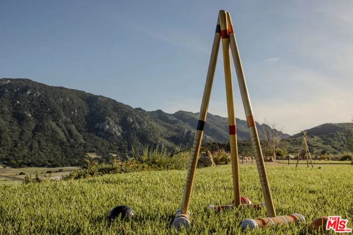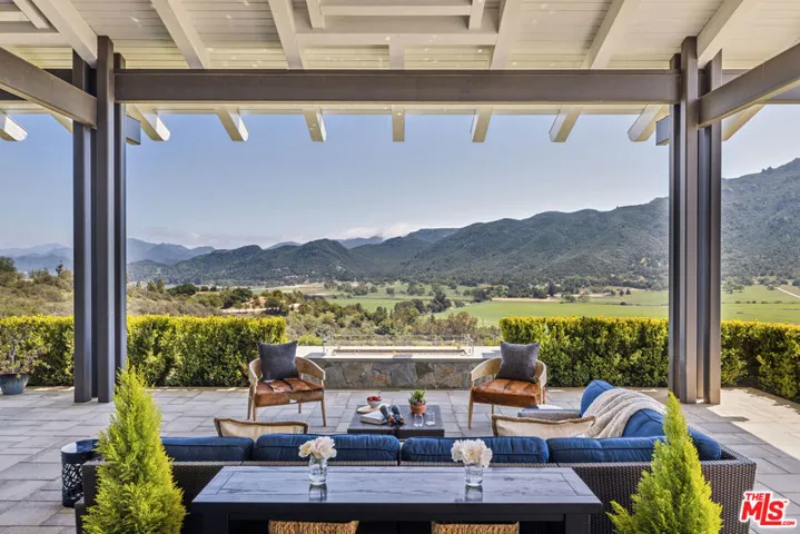 1697 Potrero Road and its breath-taking views sits behind twin, dove-white, four-rail fencing. Beyond its gated entrance lies a private lane that meanders its way uphill. Bordered by beds of wild flowers, clusters of lavender, pockets of iris and bursts of crimson bottlebrush, this is a journey that celebrates flora and fauna. At its summit, the lane opens onto a dramatic courtyard, with breath-taking, sweeping views. One of the newest homes in prestigious Hidden Valley, this is a grand and unique hybrid of traditional Cape Cod architecture and contemporary Californian lifestyle. The path to the front door is flanked by a car collector’s garage-cum-gallery and a vista-framing car port. With ceilings that reach 29ft, and a view upon entry from one end to the other, the scale of this house is magnificent. Pass the owner’s study, and enter the open plan great room, finding the dining area to the right and living room to the left. With pillared, vaulted ceilings, an abundance of natural light, the coziness of a roaring fire, as well as retracting glass doors to an external dining area, this is a home that offers indoor-outdoor living without constraint, and that can be formal or familial, and everything in between. The family room features a chef’s kitchen, top-of-the-range appliances, peninsula high-top seating, lounge area, fireplace, under those same soaring ceilings, and it (and the games room) boasts pocket glass doors that stand 10ft high. These retracting walls of glass offer phenomenal views over the valley and Santa Monica mountains ahead, and provide direct access to the vast outdoor entertaining areas and gardens. This covered patio features a full working kitchen, barbecue, wet bar, island, and fire pit. Beyond the family room is a games and entertaining room, with multiple televisions, arcade games, ample space for ping-pong or pool, also offering unparalleled views of sunsets, rolling hills, and the gardens, mountain ranges and estates below. The bright and spacious primary suite offers equally primary views, a lounge and bar area, luxurious spa-like bathroom, gym, walk-in closet, and its own laundry. With a private terrace off the main bedroom, perfect for sunrise breakfasts, this is a suite to behold. The two story, west wing features five further bedrooms, four en-suite, two lounge areas, a kitchenette, terrace, and direct access to the rear garden and volleyball/badminton green. The main house features a salon, laundry, and walk-in pantry, as well as a guest’s powder room. The landscaped gardens are as adept at offering a place to relax and admire the views, as they are at hosting a game of croquet, boules, or even for some decompressing yoga overlooking the neighboring vineyard. En route to the guest house, sits the repurposed bull-pen. This charming, octagonal structure, with its own distinct vantage point and abundance of natural light, is currently used as an artist’s studio. The guest house has been constructed, equipped, and decorated to the same exacting standards as the main house. The house features the blue stone, architectural details, soaring ceilings, and feel of the main house, yet delights in a very different setting, nestled amongst the trees. The 1,789sq ft guest house features one main entertaining room, a galley kitchen, two en-suite bedrooms, and one further bathroom; as well as a covered, outdoor kitchen, barbecue, lounge and dining area, measuring approximately 1,000sq ft. The guest house’s landscaped rear garden leads to fully rebuilt and beautifully restored stables. Offering a reception room, tack room, hay loft, and five stalls, these exquisite stables would bring a smile to the face of any equine enthusiast. This magical estate is like no other: unique in its architectural magnificence; privileged in its elevated vantage point; maximizing the use of its uninterrupted 360 degree, sweeping views; impeccable in its design, construction, and landscaping; and a rarity being such a new home.