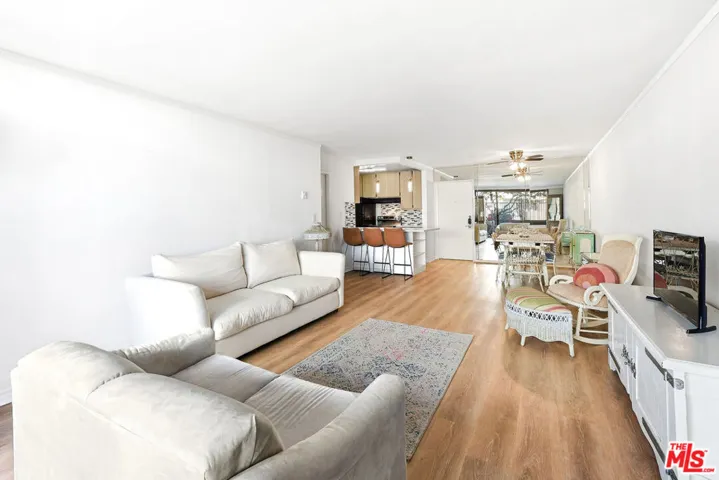 Welcome home to your light-filled condo of over 1,000 square feet in the heart of Playa del Rey, thoughtfully renovated and partially furnished for an easy move-in. Wide plank flooring throughout, and a private balcony that is the perfect space for morning coffee. The open living and dining area feels inviting with smooth ceilings and a textured bohemian accent wall that adds warmth and personality. Down the hall are two generously sized bedrooms, including an en-suite primary with excellent closet space and a Toto Washlet Bidet, plus a well-appointed guest bedroom with convenient access to the second bathroom across the hall. Set within coveted Cross Creek Village, enjoy resort-style amenities including two swimming pools, a fitness center, sauna, spa, playground, tennis, pickleball, and basketball courts, plus a clubhouse with a library, kitchen, billiards, table tennis, and conference space. On-site management and dry cleaning add everyday convenience, and the premier location is minutes to the beach, local dining, LMU, LAX, and Otis College of Art and Design. Additional highlights include controlled access, ample guest parking, and two assigned parking spaces. Rent includes water, sewer, and trash. One time, non-refundable move-in fee of $575 paid directly to HOA.