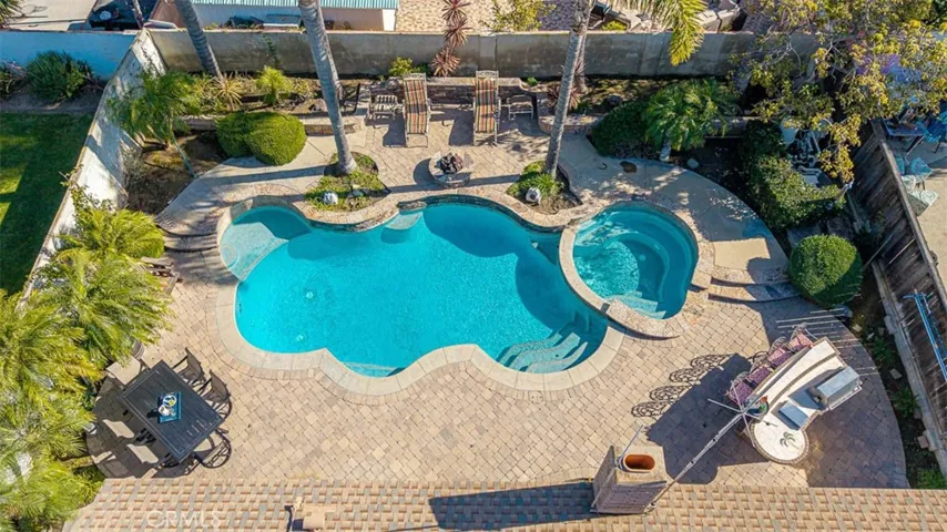 Step outside to your private backyard retreat, a standout feature of the home, showcasing a heated saltwater pool and spa along with a built-in barbecue and outdoor kitchen area. The spacious yard offers plenty of room to entertain, relax, and enjoy year-round outdoor living.