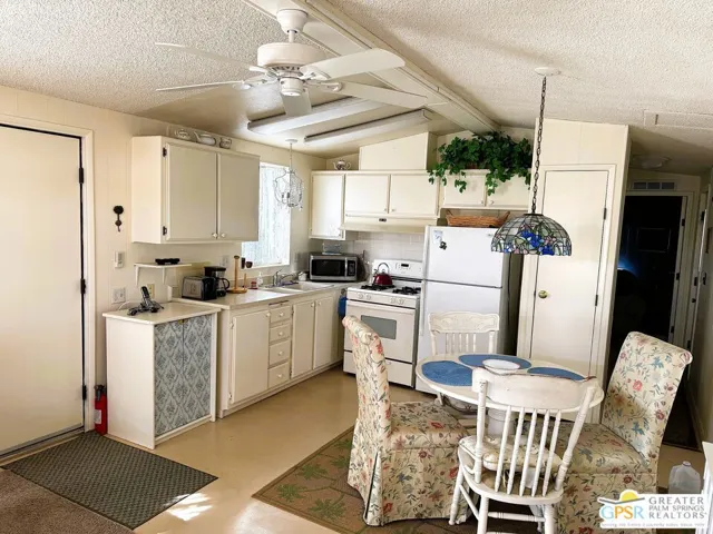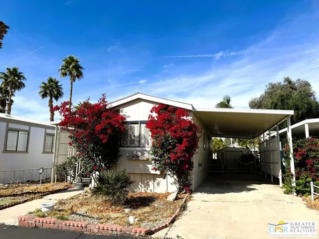 Check out this well kept FURNISHED home located in the cozy 55+ community of Corkill Palms. There is 560 square feet of open living space plus a bonus room addition approximately 8′ x12′ perfect for an office or extra sleeping area when overnight guests arrive. There is 1 bedroom and 1 bath. Bright and cozy eat in kitchen with refrigerator, gas range with hood vent and microwave. Relaxing porch off of living room with nice mountain view. There is a storage shed off the carport approximately 9′ x 12′ with newer washer and dryer and work bench complete with several tools. Roof and storage shed roof recoated in 2019. Relax in the Therapeutic Natural Mineral Springs at the Clubhouse or have some fun on the putting green or in the billiard room. This unit is super close to these amenities for easy access. Also, if you have a dog, this home has a back yard perfect for your pet. Buyer to verify with park manager space rent amount and any utility charge amounts passed on to home owners. Call today to set up an appointment to view this great property!