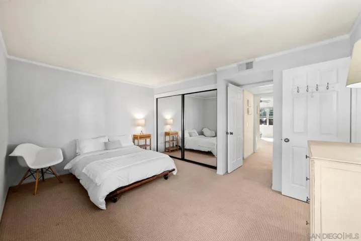 Impeccably maintained residence in a secure, boutique condo community in one of San Diego’s most convenient Mission Hills locations near Old Town. This rarely available home offers the only private street-level entrance in the complex with no neighbors above, creating a townhome-style feel and exceptional privacy. The thoughtfully designed layout features en suite bathrooms for both bedrooms, ideal for flexible living arrangements. The upgraded kitchen is a standout with stainless steel appliances, including a double oven with warming drawer, perfect for everyday cooking or entertaining. Additional highlights include two secured garage parking spaces, extra in-unit storage, a private outdoor backyard-style area with space for surfboards, paddle boards, kayaks, and bikes, plus a full-size washer and dryer. Enjoy recently renovated common areas, a relaxing spa, and beautifully refreshed grounds. From the community, take in views of the airport and peek views of the bay. Street parking is also available for guests. This home offers impressive square footage, urban convenience, and suburban-style amenities. Ideally located close to Mission Hills dining and shopping, Old Town, the bay, and San Diego International Airport, making daily life and commuting effortless. A rare opportunity for low-maintenance living in a highly desirable central San Diego neighborhood.