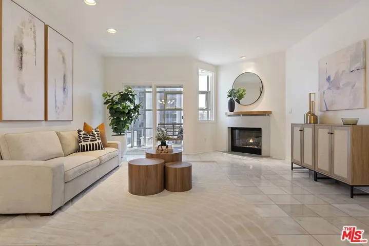 This private and well-appointed 2 level Brentwood townhouse offers serene city/mountain views and a thoughtfully designed, spacious layout. The upper level features an open floor plan with a modern kitchen outfitted with stainless steel appliances, a dedicated dining area, a large living room with marble floors, a gas fireplace, a guest powder room, and a glass-enclosed office or bonus space filled with natural light. Downstairs, you’ll find both generously sized bedrooms. The expansive primary suite offers a sitting area, two closets (including a walk-in), and a well-appointed en-suite bath with a separate shower and soaking tub. The second bedroom also features its own full bathroom. This level includes a laundry area with side-by-side washer and dryer, additional storage, and access to a private outdoor patio. Additional features include a Nest thermostat, two side-by-side parking spaces, ample guest parking, and a dedicated storage cage above the parking area. Enjoy access to a pool, spa, sauna, and gym within a controlled-access building. Ideally situated with easy access to UCLA, the 405, top-rated schools, and Brentwood’s shops and restaurants just moments away.