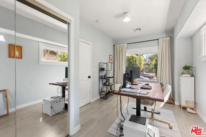 Nestled in a peaceful corner of Vermont Square, this extensively remodeled Craftsman-style home seamlessly combines modern updates with timeless charm. Just a short stroll from the historic Vermont Square Library and a park with a playground, this 3-bedroom, 3-bath residence offers an open floor plan with high ceilings and luxurious wide plank laminate wood flooring that flows throughout. The spacious living areas feature a versatile nook by the front window, ideal for an office or playroom, while the modern kitchen is designed to impress with a large island offering seating for four, sleek new appliances, quartz countertops, and ample cabinetry for all your storage needs. Adjacent to the kitchen, the thoughtfully designed laundry area doubles as a mudroom, complete with additional space for a pantry or extra storage. The two secondary bedrooms are connected by a dual-sink Jack and Jill bathroom, ensuring convenience and privacy, while a powder room provides additional comfort for guests. The primary suite serves as a private retreat with its own ensuite bathroom, featuring a wide double vanity, refined finishes, and generous closet space. Renovated in 2021 and further enhanced with recent updates, this home offers a host of desirable features, including a converted garage that functions as a flexible space, perfect for a studio, gym, or home office, equipped with a portable AC unit. The front yard is adorned with a mango tree and a small kumquat tree, while the backyard is a private oasis featuring both a mandarin and a lime tree, surrounded by drought-tolerant landscaping and a lush grassy area. The gated driveway provides secure parking for up to four cars, making this home ideally suited for both everyday living and entertaining. Minimum 650 credit score and income must be at least 2.5x the monthly rent.