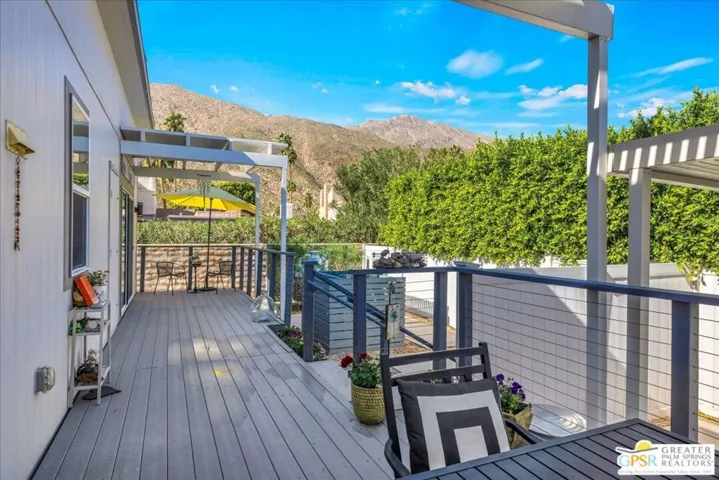 Experience Modern Micro-Living in South Palm Springs at the Palm Canyon Mobile Club, a unique village of designer homes in a vintage park setting. First time on the market since originally bought, this 1-bedroom, 1-bath residence was the original owner’s upgraded model home and was featured in Dwell magazine when first built. Loaded with “all the bells and whistles,” the interior features soaring clerestory windows, a modern kitchen with quartz waterfall counters, designer hardware, and a built-in dresser with mirrored wardrobes. The exterior is a desert oasis, boasting a premier lot with no neighbors behind you, mature landscaping, and unobstructed West Mountain Views. Whether you’re sipping coffee on the front porch or entertaining on the massive wrap-around deck, the mountain views and decorative breeze block accents offer an unmatched desert aesthetic. Community amenities include a remodeled resort-style pool, clubhouse, gym, dog park, and lounge areas with barbecues. Close to great hiking trails, amazing dining, shopping and much more. Park approval is required for new homeowners in this gated community, monthly space rent is $1,350. Paradise is calling, start living the good life today!