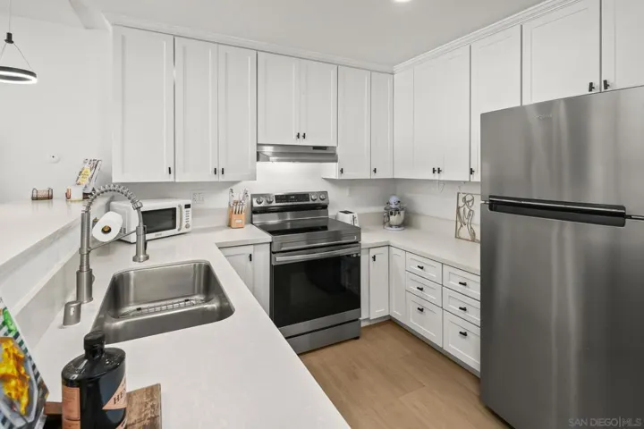 Discover this move-in ready, beautifully updated condo in a prime location on Friars Rd—truly a rare find! This clean, modern home features an open and spacious layout, with a bright living area filled with natural light. The inviting entry flows into a dedicated dining area. Enjoy a stylish kitchen with beautiful quartz countertops, and step out onto your large private balcony overlooking lush hill as a backdrop. The spacious bedroom includes a walk-in closet, and the large bathroom offers comfort and convenience. (See supplement below) Community amenities include a sparkling pool, relaxing jacuzzi, exercise room, and a club room with kitchen—plus secure building access and parking. Low HOA fees add to the appeal. Located directly across from the exciting new Riverwalk Planned Community (under construction), you’ll soon have access to more retail shopping, office space, a transit stop, parks, parking, and open space along the scenic San Diego River. Minutes from USD, Mission Bay, Downtown, and the airport, this is truly the best central location in San Diego. Don’t miss your chance to own this exceptional condo—schedule a tour today!