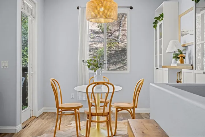 Private! No buildings in front of home, so private views of hillside. With no front neighbors and tons of natural light, this turnkey townhome will be the perfect place to call home. The main-level primary suite makes everyday living simple, and the home features laminate flooring throughout (no carpet), stylish barn door, stainless steel appliances, and a convenient stackable washer/dryer. You’ll enjoy two separate outdoor spaces: a cozy first-floor patio for morning coffee and a sunny second-level balcony for unwinding at the end of the day. The attached 2-car garage adds convenience, and the community pool and spa offer the perfect place to relax.