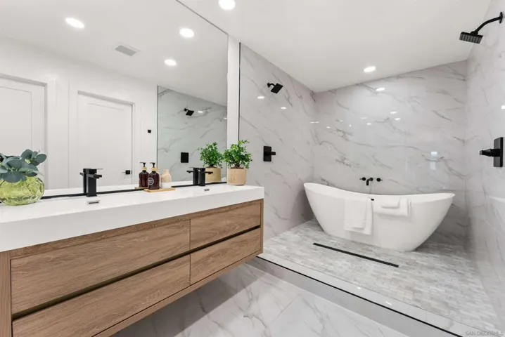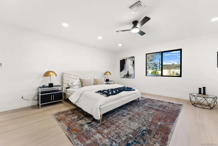 Beautifully reimagined and truly move-in ready, this standout Clairemont home delivers the layout, finishes, and lifestyle today’s buyers are searching for. Set on an approx. 6,000 sqft lot, the home offers a bright, open-concept floor plan filled with natural light, wide-plank flooring, and seamless flow throughout. The kitchen is the centerpiece, designed for both function and style with custom cabinetry, quartz countertops, stainless steel appliances, and a generous island ideal for entertaining. Living and dining spaces open effortlessly to the backyard through oversized sliding doors, creating an easy indoor-outdoor lifestyle. The private yard features a covered patio and ample usable space for gatherings, play, or quiet relaxation. The primary suite feels like a true retreat, complete with a walk-in closet and a stunning, spa-inspired primary bath with clean lines and designer finishes. Additional bedrooms offer flexibility for guests, a home office, or growing needs. Solar is already in place, and the home includes a tankless water heater and an attached 2-car garage, adding everyday convenience and efficiency. Located on a quiet street in a prime Clairemont neighborhood just minutes from beaches, shopping, dining, and freeway access. This is the kind of turnkey home buyers want in todays market!