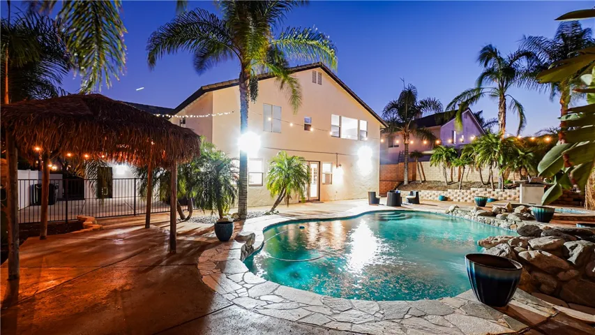 South Corona 5 bed 5 bath home on huge lot with pool and RV Parking. Highly upgraded turnkey home for discerning individuals in search of sheer perfection. This impressive two-level residence offers the best in modern living! Enjoying this highly coveted South Corona location in an Award Winning School district. Entering the house you’ll notice the large great room with upgraded kitchen, Huge kitchen island with dual sinks. The upgraded chef’s kitchen comes with with quartz Island, walk in pantry, Viking Professional 6 burner stove with skillet and pot filler, Viking Hood, Refrigerator, and Warming Tray. Not to mention beautiful outdoor entertainment space, large pool, BBQ Island and HUGE RV parking space! Plenty of room to entertain family and friends!! Kitchen opens to family room with a modern fireplace. Downstairs you will find a large bedroom suite with a private full bath; additionally there is also a guest bath downstairs. Primary bedroom suite upstairs is very spacious, connected to a Bathroom feels like a spa; featuring a stand alone tub, dual hanging vanities, and a HUGE Walk-in Shower with Multiple Rainfall, and body sprays. Attached is a huge custom designed walk-in closet. Additionally there are three large bedrooms and two secondary bathrooms upstairs. Home has Low Low Tax and no HOA. Come tour of this Masterpiece today! Light dances across the meticulously laid white marble porcelain tiles and reflects off the high-coffered ceiling of a breathtaking space. Family and friends will gather and enjoy in the inviting and beautiful home.