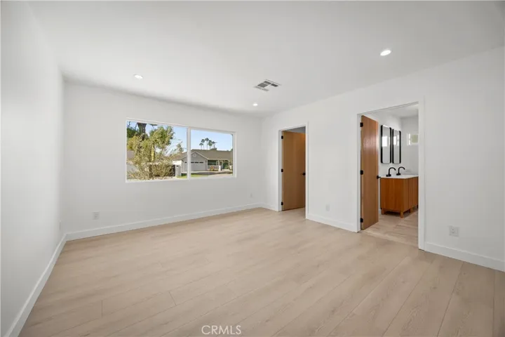 Contemporary redesigned Lake Balboa Home! Approximately 1,450 SF of beautifully curated living space featuring 3 bedrooms and 2 elegant bathrooms. An open, light-filled floor plan seamlessly connects the living, dining, and kitchen areas—ideal for hosting family gatherings and entertaining with ease. The expansive primary suite offers a walk-in closet and double vanity, creating a serene private retreat. Thoughtfully refreshed with sleek modern cabinetry, quartz countertops and laminate flooring. Fully equipped with premium new appliances, including refrigerator, washer, and dryer. Enhanced curb appeal with contemporary landscaping and mature olive trees. A rare turnkey lease offering understated luxury and modern comfort in Lake Balboa. This home has one common wall and no backyard. Ample on street parking and conveniently located near restaurants, shops, schools and more. Available for immediate move in.