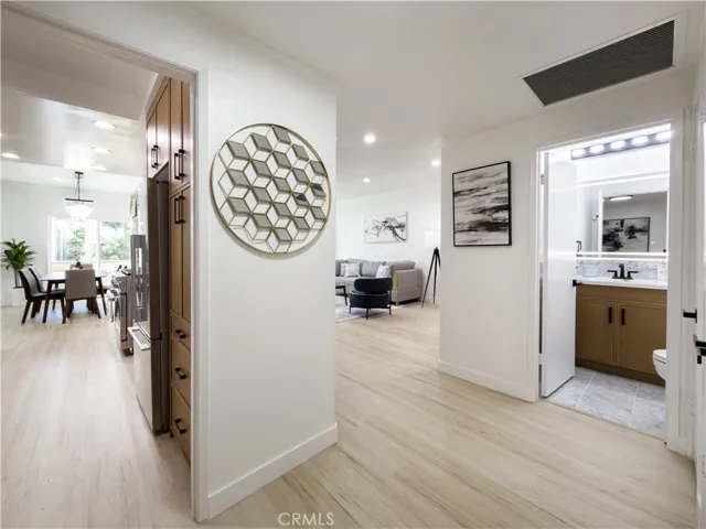 Sellers are open to assisting buyers with interest rate buy-down. Best value per sqft for a beautifully remodeled 2-bedroom, 2.5-bath condo in prime Westwood location. All work was completed with permits to ensure quality and compliance. Features include 8mm waterproof SPC vinyl flooring with 12mm underlayment, new double-pane windows and sliding door, recessed lighting with dimmers, and a marble-faced fireplace. The bathrooms showcase marble floors and backsplash, custom vanities with granite countertops, Kohler faucets, 12″ rainfall showers, LED mirrors with defrost, and Kohler toilets. The modern kitchen boasts frameless cabinets, granite countertops, glass tile backsplash, and high-end appliances including a 36″ American Range 6-burner (ARROB366-N), 42″ ZLine range hood (619-42), GE Profile built-in microwave (PWB7030SLSS), Fisher & Paykel counter-depth French door refrigerator (RF170ADX4N), Samsung stainless-steel dishwasher (DW80BB7070), and Kohler faucet. Additional highlights include central air/heat, in-unit laundry room, balcony off the living room, optional no-stairs access from garage to the unit via elevator in the lobby, gated 2-spaces tandem parking, and community pool, spa, and clubhouse. Located in the desirable Westwood Charter school district, just minutes from UCLA, Century City, and Beverly Hills.