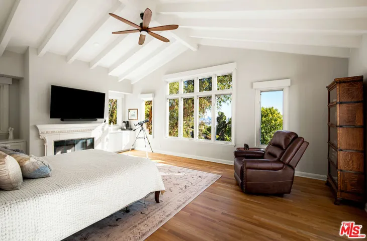 The ultimate Spanish Revival on one of Outpost Estates’ most sought-after streets, walled and gated for exceptional privacy. Enter through the front gate into a stunning courtyard with a tranquil fountain, lush landscaping, and dramatic nighttime lighting. From the moment you step inside, you’re greeted by a breathtaking, head-on city view. The floor plan is ideal-gracious, flowing, and beautifully proportioned throughout. The living room is a true pleasure to relax in, while the spectacular, remodeled chef’s kitchen, ( which is an absolute pleasure to create in), opens seamlessly to an expansive family room, creating an extraordinary space for everyday living and unforgettable entertaining. These rooms spill out to a generous terrace overlooking the city lights. The primary suite is a private retreat with a sitting room, terrace, remodeled bath, and a large walk-in closet-all enjoying the captivating views. A fully self-contained guest suite offers its own kitchen, living room, bedroom, and bath. Spacious, warm, and inviting, this quintessential California hacienda offers serene living in a peaceful, quiet setting.