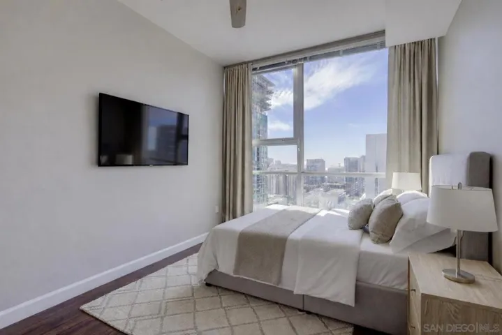 Welcome to urban living at its finest in this stunning high-rise condo located at 300 West Beech Street, San Diego. This UNFURNISHED unit offers breathtaking panoramic views of the city skyline, visible through expansive floor-to-ceiling windows that fill the space with natural light. The open-concept living area features elegant hardwood flooring and a cozy fireplace, perfect for relaxation or entertaining guests. The modern kitchen is equipped with stainless steel appliances, sleek countertops, and ample cabinetry, making it a chef’s delight. The primary suite is a serene retreat, complete with a spacious layout and an en-suite bathroom featuring contemporary fixtures and finishes. Additional highlights of this residence include a private balcony with sweeping city views, in-unit laundry for convenience, and access to building amenities such as a fitness center and pool. Situated in a prime location, residents enjoy easy access to San Diego’s vibrant downtown scene, including dining, shopping, and entertainment options. Experience the epitome of luxury and convenience in this exceptional property.