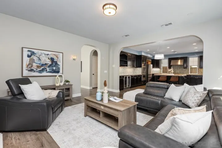 Nestled in the heart of Del Sur, this Plan 2 home is a short walk to community parks, hiking trails and top-rated Poway schools, on a quiet, level, family-friendly street. The entry opens to vaulted ceilings, a cozy office and an outdoor seating area with built-in fireplace, ideal for summer BBQs. The kitchen and living room form an inviting great room with a large island and bar seating. Upstairs are 4 spacious bedrooms, including an east-facing primary suite, plus low-maintenance turf yard and owned solar. It won’t last long.