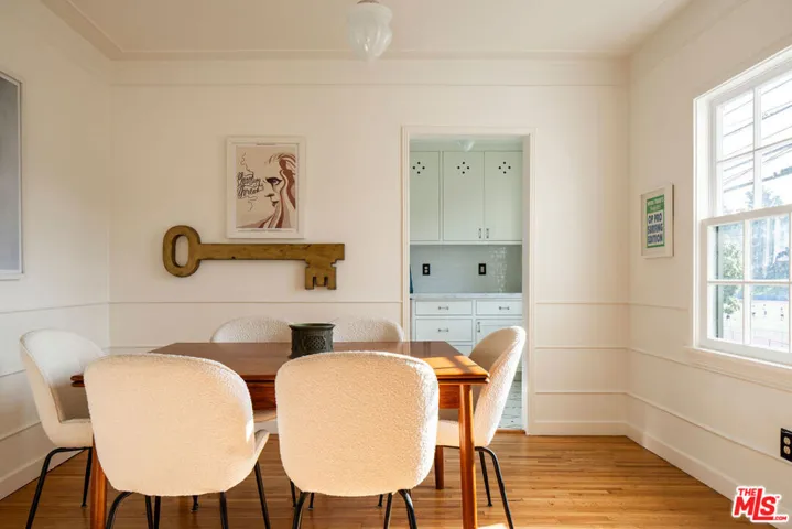 Located in the heart of Los Feliz, this enchanting 2 bed, 1 bath residence is part of The Griffith, a 1940 property designed by architect H. J. Hamer, AIA. Thoughtfully reimagined by Better Shelter, the home blends classic architectural charm with a refined modern sensibility. An arched entryway leads into light-filled interiors featuring signature curved bay windows, a true dining room with original hardwood floors, and a beautifully renovated kitchen with custom cabinetry, marble countertops, and timeless tilework. Two private outdoor areas extend the living space, while a bonus cellar offers valuable additional storage. Original architectural details are layered with curated vintage lighting, custom stained glass, and tailored design touches throughout. The property has been comprehensively updated with major system upgrades, including a new roof, sewer line, full electrical and plumbing systems, central HVAC, fencing, and landscaping. A private garage adds convenience and additional value. A rare Los Feliz offering that combines architectural character, thoughtful design, and an exceptional location in one move-in-ready home.