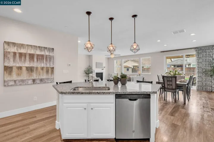 Welcome to 1881 Hartford Ct in the highly desirable River Islands community of Lathrop! Nestled on a quiet, family-friendly court, this light and bright home, built in 2019, offers a well-designed and spacious floor plan with 4 bedrooms and 3 full baths, including a downstairs bedroom and bath ideal for guests or multi-generational living. The open-concept living, dining, and kitchen areas flow seamlessly, perfect for everyday living and entertaining. A convenient mud room area and a large pantry provide excellent organization and functionality. Upstairs, enjoy a spacious loft ideal for a second living area, home office, or playroom. The expansive primary suite is a true retreat featuring dual walk-in closets and a generous bathroom with separate his-and-hers sink areas. The large backyard is designed for relaxation and entertaining with a covered patio for outdoor dining and a dedicated dog run. Just a 2-minute walk to the baseball field and dog park, this home offers exceptional access to outdoor recreation. Additional highlights include no HOA fees and approximately four years remaining on the builder warranty, making this a fantastic opportunity to own a newer home in one of Lathrop’s premier master-planned communities.