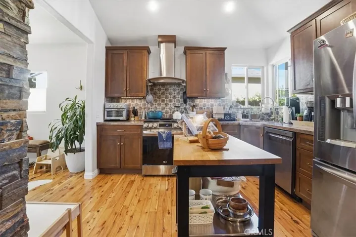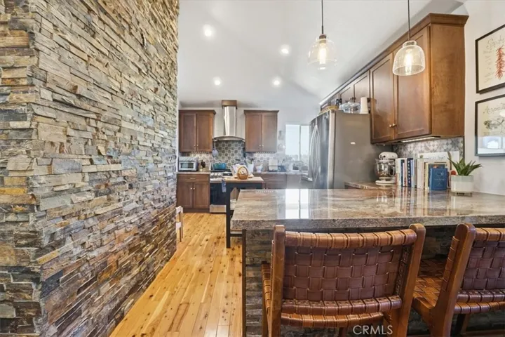 Nestled in the heart of Burbank’s highly coveted Magnolia Park, this charming residence offers a perfect blend of character, modern updates, and incredible versatility. The open-concept interior is immediately inviting, featuring warm pine wood floors and a stone-wrapped wood-burning fireplace that serves as a stunning focal point, transitioning beautifully into the kitchen area. The kitchen features boasting elegant granite countertops, classic shaker-style cabinetry, and premium stainless steel LG appliances, all illuminated by bright recessed lighting.