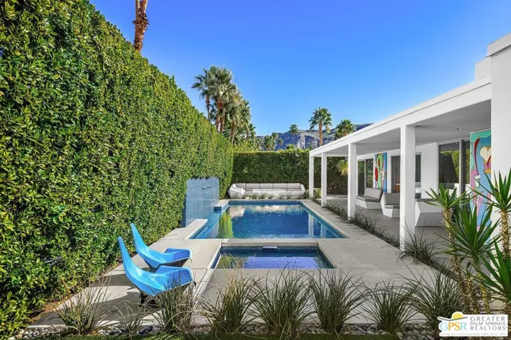 Architecturally significant, AIA award-winning Kenneth David Lee partnered with notable Palm Springs builder John Caranci executing this modern home in coveted Indian Canyons. Gallery-like interiors with polished concrete floors, bespoke walnut cabinetry, high-end modern finishes, and abundant built-in storage. Chef’s kitchen features massive refrigeration/freezer, induction cooktop, and a large entertainer’s bar with secondary refrigeration and wine storage. Stunning bathrooms include a primary suite with oversized steam shower and generous outdoor garden shower. Exceptionally private yard with a striking all-glass mosaic tile pool and spa, surrounded by mature landscaping. Owned solar with three backup batteries, whole-house water filtration, and thoughtfully updated systems throughout. Adjacent to world-class golf and endless hiking trails.