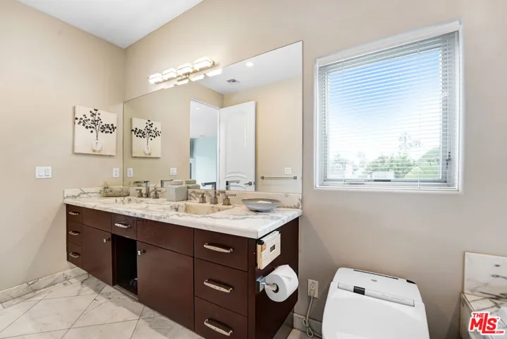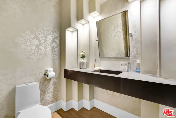 Contemporary Masterpiece! This contemporary dream home features a great-for-entertaining floor plan, grand living room, wet bar w granite counter-tops, & Venetian plaster finished wall fireplace. Formal dining room leads through the butler’s station into a professional Chef’s kitchen, large center island with sink, stainless steel appliances, custom made cabinetry, 32-bottle wine refrigerator, walk-in pantry, & breakfast area. The first floor also features a large bedroom suite & a luxurious venetian plaster powder room. Glide up the intricate modern staircase with designer railing to the second floor featuring three bedroom suites, including 2 Luxurious Master Suites with steam showers in white Carrera marble, bubbling spa tubs with massaging jets, state-of-the-art bidet toilets, custom made hardwood cabinets, designer sinks, boutique walk-in closets, and fireplaces. Expansive outdoor entertaining area, complete with cabana-style sitting area and lushly landscaped backyard. Enjoy the lifestyle of Melrose, West Hollywood, Beverly Hills, and Sunset Strip!