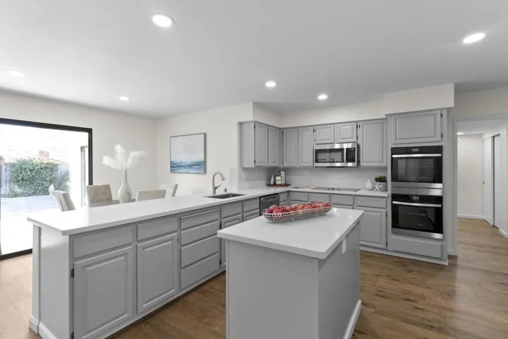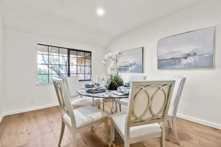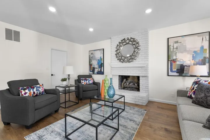 Welcome home to this beautifully updated single-level residence in a desirable Pleasanton neighborhood. Recently renovated with brand-new flooring and fresh interior paint throughout, this home is bright, clean, and move-in ready. The flexible floor plan offers multiple living spaces, including a welcoming living room and a separate family room with a cozy gas fireplace, ideal for everyday living and entertaining. The updated kitchen features new countertops, new appliances, ample cabinetry, and flows into the family room and breakfast nook. A dedicated dining room provides additional space for gatherings. The home offers 4 bedrooms and 2 bathrooms, including a private primary suite set apart from the secondary bedrooms. Sliding glass doors create a seamless connection to the private, courtyard-style backyard with expansive patios and a built-in brick barbecue—offer the ideal setting for outdoor dining, entertaining, or simply enjoying Pleasanton’s beautiful weather. Additional features include central heating and air, a roll-up garage door with opener, and approx. 2,100 sq. ft. Minutes from I-580 / I-680, offering easy commuter access while nestled in a peaceful neighborhood close to hiking trails, parks, downtown Pleasanton shopping & dining, award-winning schools & healthcare.